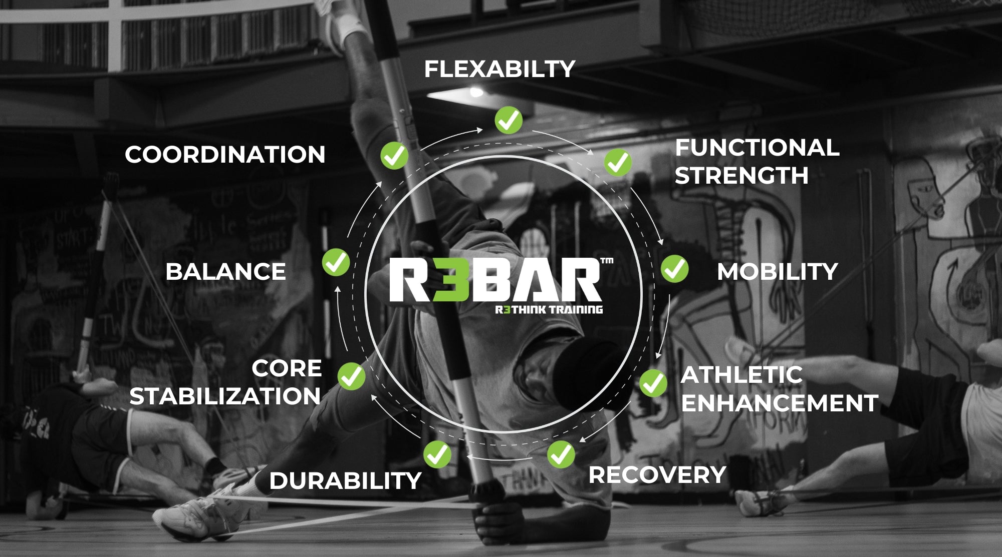 The R3BAR is a portable Exercise Training Tool designed for Athletic Performance Enhancement, Pre-habilitation, Rehabilitation, Therapeutic & Active Recovery and for Improving overall freedom of mobility and movement.